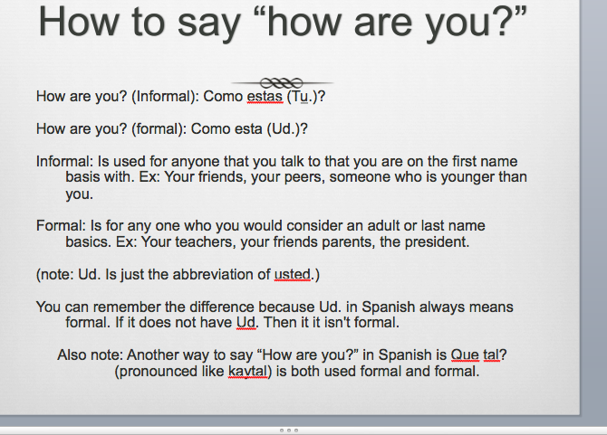 How To Use Slideshare Spanish Greetings Pttx from image.slidesharecdn.com We did not find results for: How are you in spanish informal. Check spelling or type a new query. Maybe you would like to learn more about one of these?